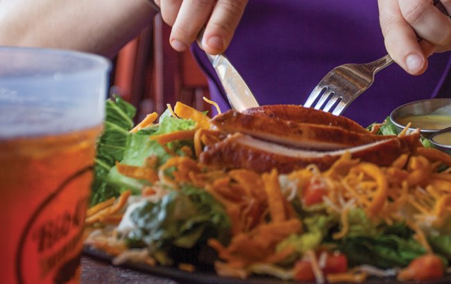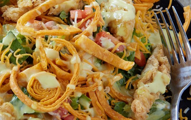 Choice of meat over fresh greens, topped with tomato, cheese, tortilla strips, and your choice of dressing.
